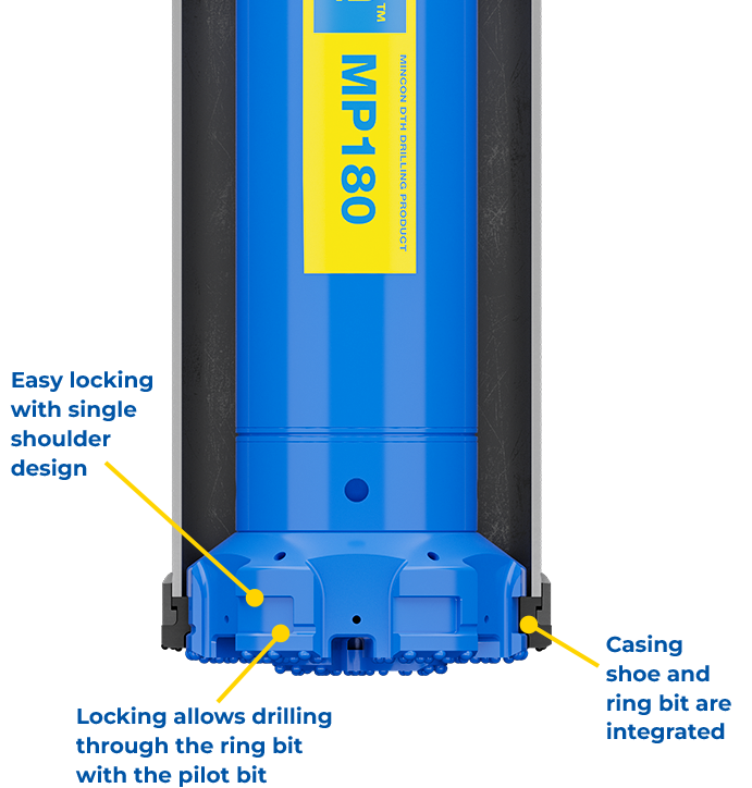 The system is available from 114 to 1 524 mm casings and for all major shank designs. It uses Spiral Flush technology, offering class-leading safety in overburden drilling. The drill through system can also be delivered with a non-DT pilot.